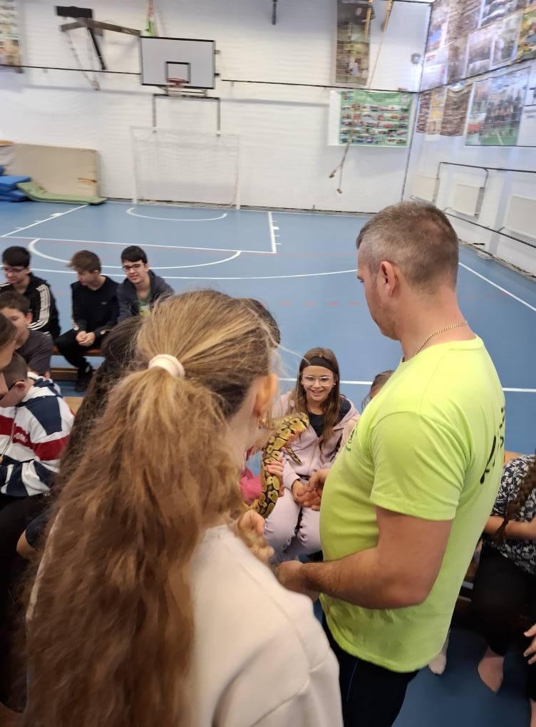 Az Állatok világnapja alkalmából tanulóink a Kicsi-zoo előadásán vehettek részt, közelebbről is megismerkedhettek a kígyóval, agámával, kaméleonnal, nyuszival, tengerimalaccal, sünivel.