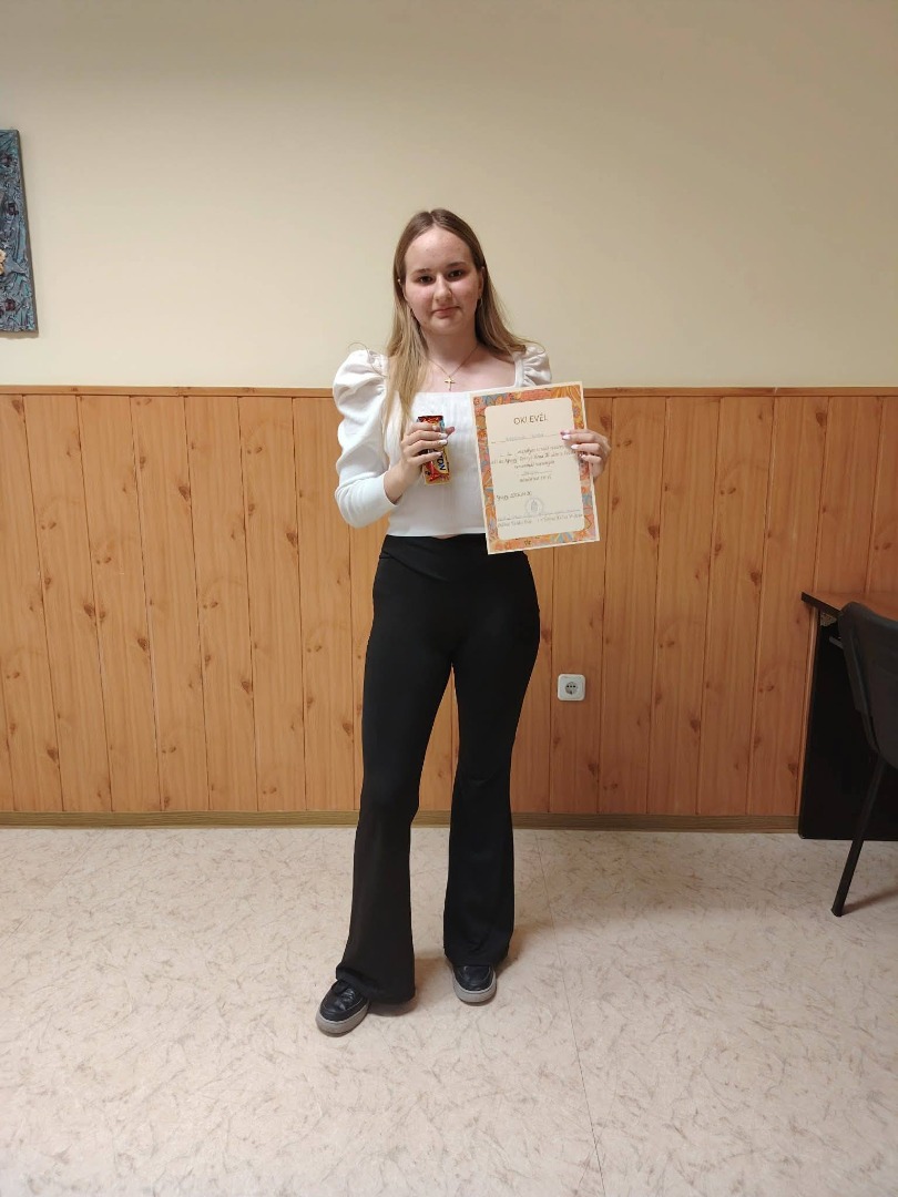 Gratulálunk Borókának a kitartó munkájához és szép sikeréhez, valamint köszönjük Olasz Ágnes felkészítő tanárnéninek a támogatást! További sok sikert kívánunk a jövőben!